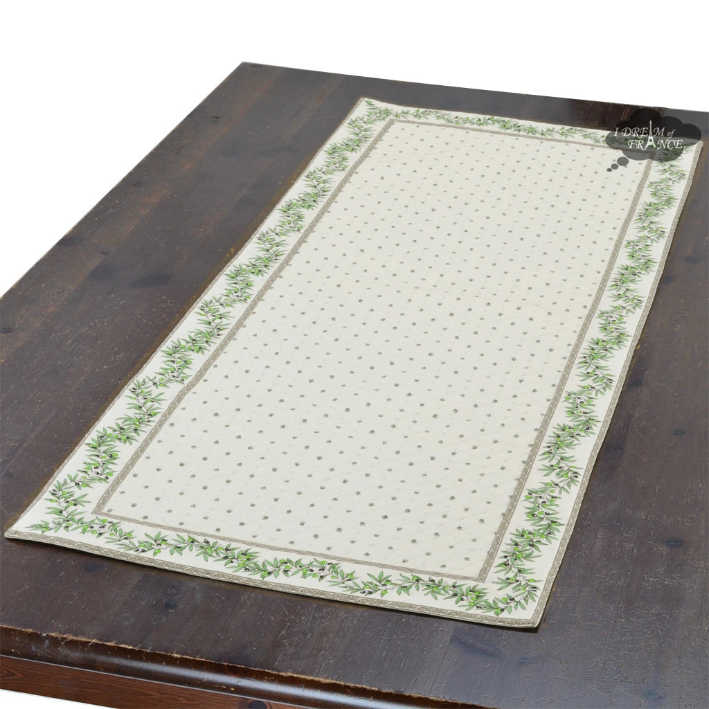 19×49″ Calisson Cream Quilted French Cotton Table Runner By Tissus Toselli