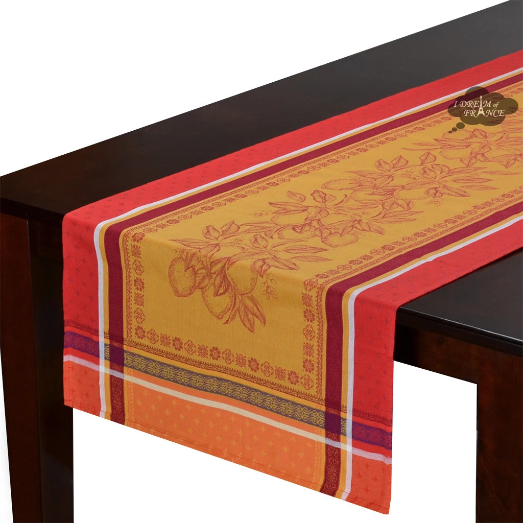 20×64″ Cedrat Red & Yellow Jacquard Cotton Table Runner By Tissus Toselli