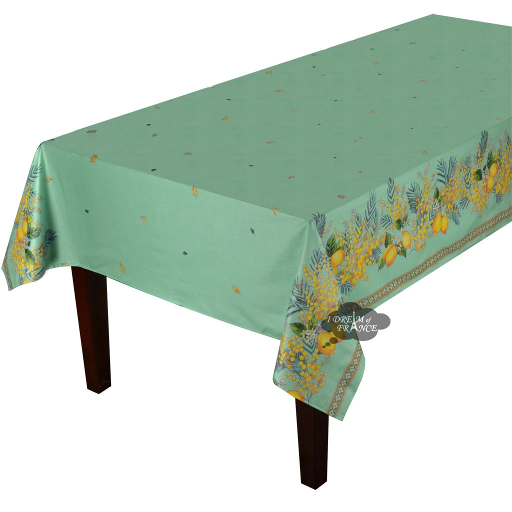 60×158″ Rectangular Lemon & Mimosa Green All-Over Acrylic-Coated Cotton Tablecloth By Label France