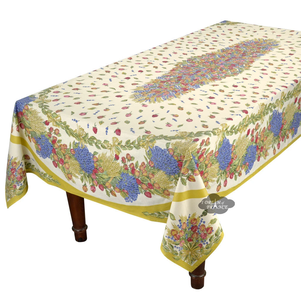 60×96″ Rectangular Fayence Cream Acrylic-Coated Cotton French Tablecloth By Le Cluny
