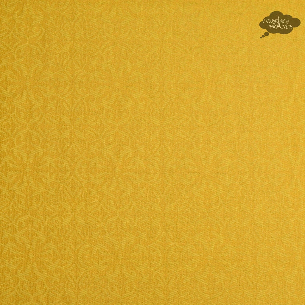 This tableclothfeatures a beautiful lemon, orCdrat, design reminiscent of sunny Provence.This tablecloth is yarn-dyed and damask-woven for beauty and durability. It is treated with Teflonto make it stain resistant and to protect your table.The beautiful Cedrat yellow & bluedesign features agolden yellowtop and background with blue, cream,and brown accents.The third photo shows the pattern in the center.