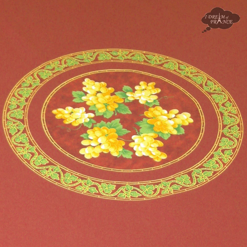 70″ Round Grapes Red Acrylic-Coated Cotton Provence Tablecloth By Le Cluny
