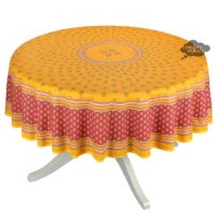 70″ Round Sormiou Yellow & Red Acrylic-Coated Cotton Tablecloth By Label France