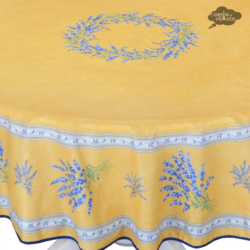 70″ Round Valensole Yellow Acrylic-Coated Cotton Tablecloth By Label France