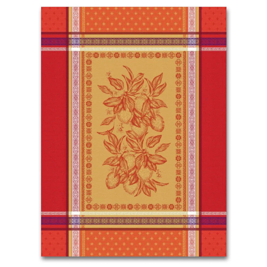 Cedrat Red & Yellow French Cotton Jacquard Dish Towel By Tissus Toselli