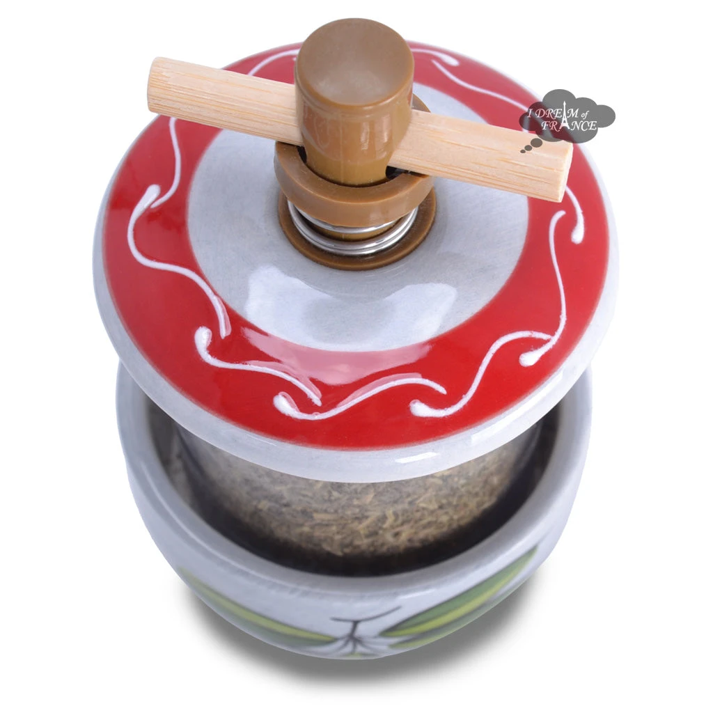 Ceramic Mill With Herbes De Provence – Olives Gray & Red