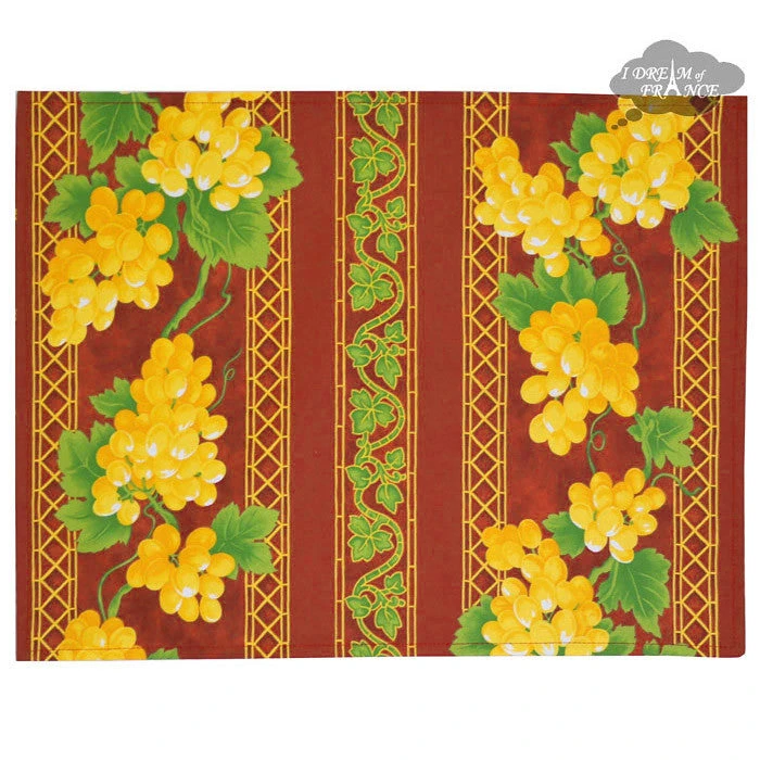 Grapes Red Acrylic-Coated Cotton Reversible Placemat By Le Cluny