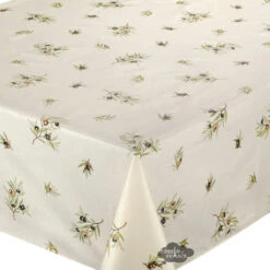 60×120″ Rect Clos Des Oliviers Cream Double Border Acrylic-Coated Cotton Tablecloth By Label France