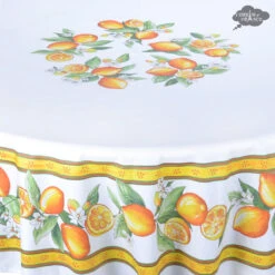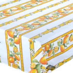 60×78″ Rectangular Lemons White Acrylic-Coated Cotton Tablecloth By Tissus Toselli