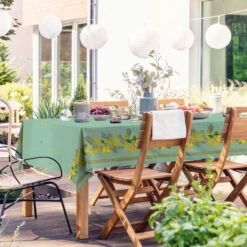 60×158″ Rectangular Lemon & Mimosa Green All-Over Acrylic-Coated Cotton Tablecloth By Label France