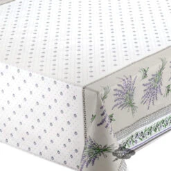 60×78″ Rect Clos Des Oliviers Cream Double Border Acrylic-Coated Cotton Tablecloth By Label France