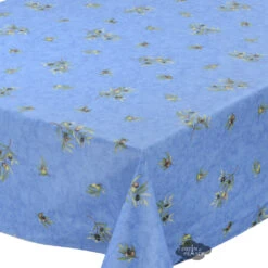 60″ Round Olives Blue All-Over Acrylic-Coated Cotton Provence Tablecloth By Le Cluny