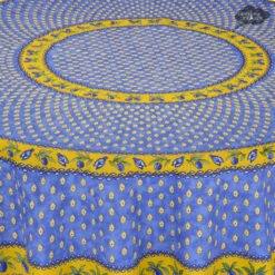 70″ Round Monaco Blue & Yellow Acrylic-Coated Cotton Provence Tablecloth By Le Cluny