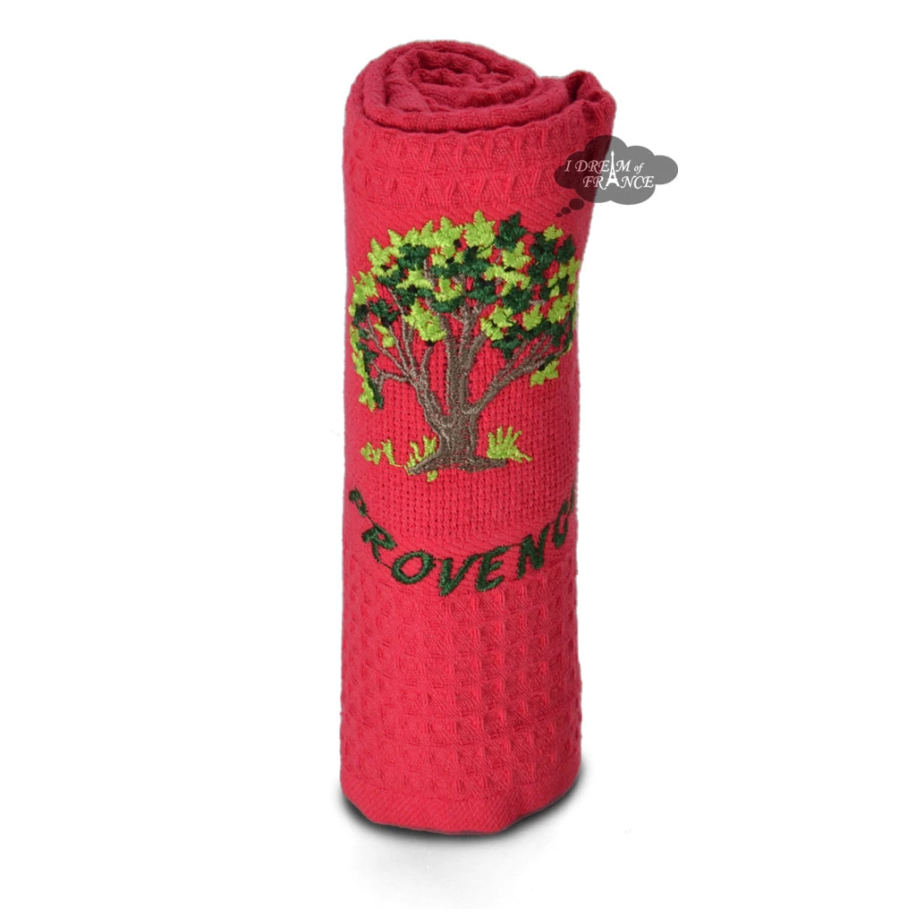 Provence Olive Tree Red Waffle-Weave Kitchen Towel By Coton Blanc