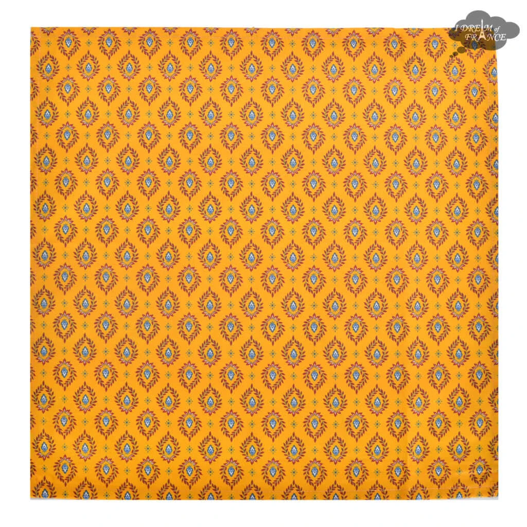 From Provence, these cotton napkins will complement our Sormiou yellow & redline or just look great on their own.Named afterthefamous Provenal “calanque” (cove or inlet in English), it features a lovely red and blue all-over patternon a golden yellow background. They are 100% cotton.Napkins are NOT coated. These napkins measure 18″ across. Sold individually. Made in France.Can be labeled as “L’Ensoleillade” or “Label France”.