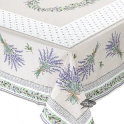60×78″ Rect Clos Des Oliviers Cream Double Border Acrylic-Coated Cotton Tablecloth By Label France