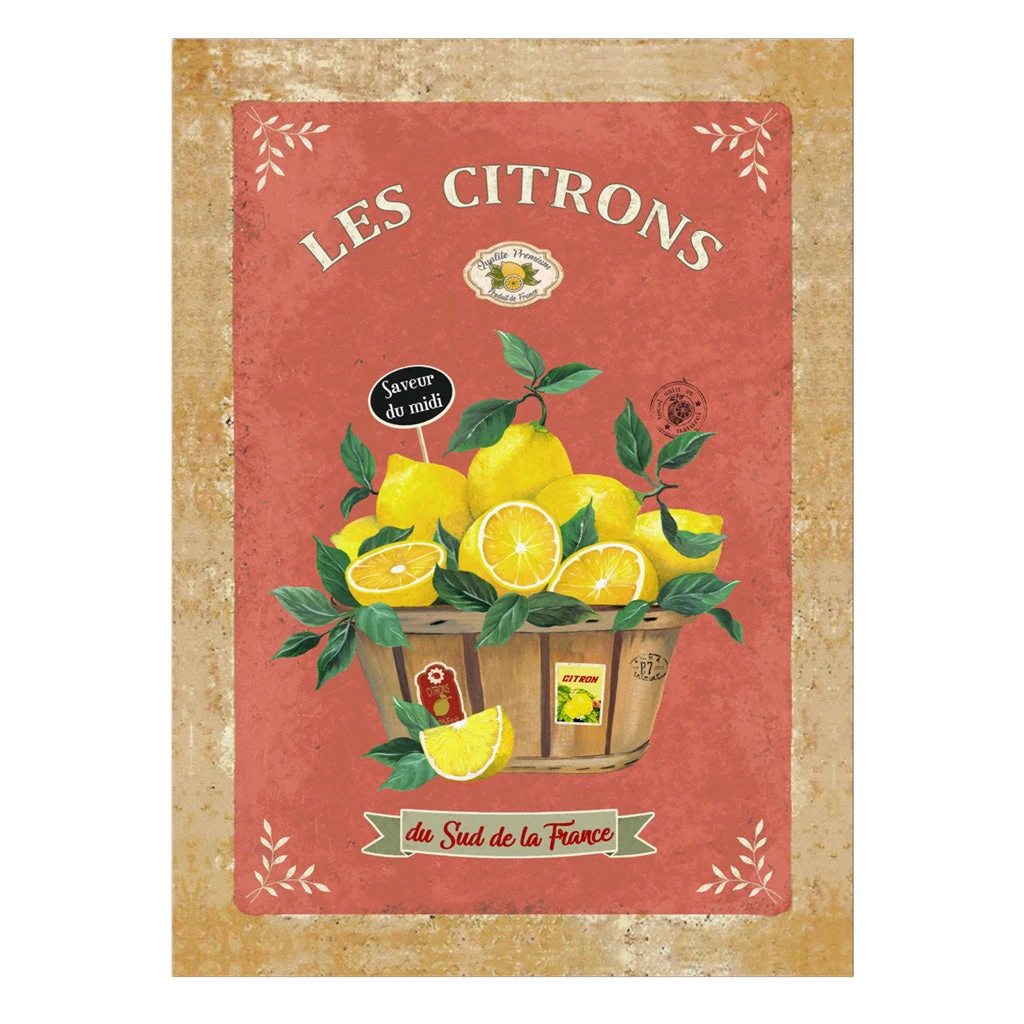 Lemons are a staple of Provencal life.This towel is labeled “Les citrons du sud de la France” or “The lemons from the south of France”. The basket of lemons has a small sign that says “Saveur du midi” and can be translated by “Flavor of the South”. The colors of this towel reflects the beauty of the sunny region. The artwork is printed digitally on 100% soft serge cotton. Measures 19×26″. Made in France.