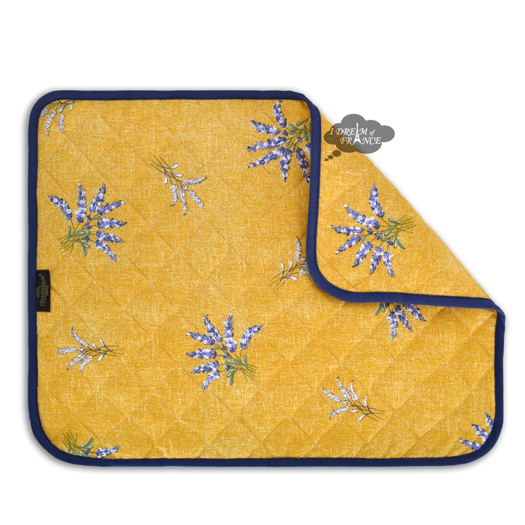 From Provence, these quilted cotton placemats will complement our ValensoleYellow line or just look great on their own. It features lavender bouquets on agolden yellow background. They are 100% cotton. These placemats measure 17×13″. Sold individually. Made in France.