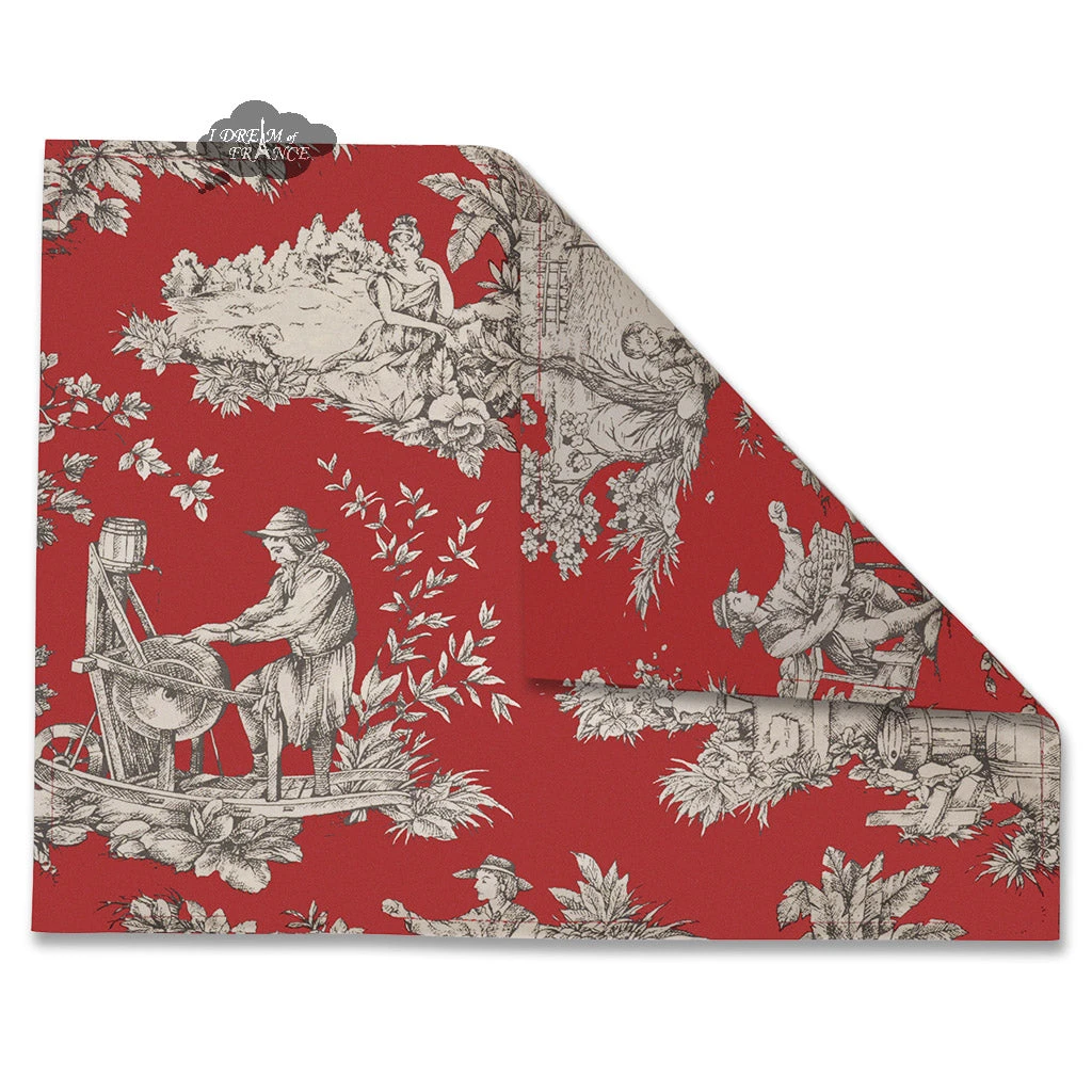 Villandry Red French Toile Acrylic-Coated Cotton Reversible Placemat By Le Cluny